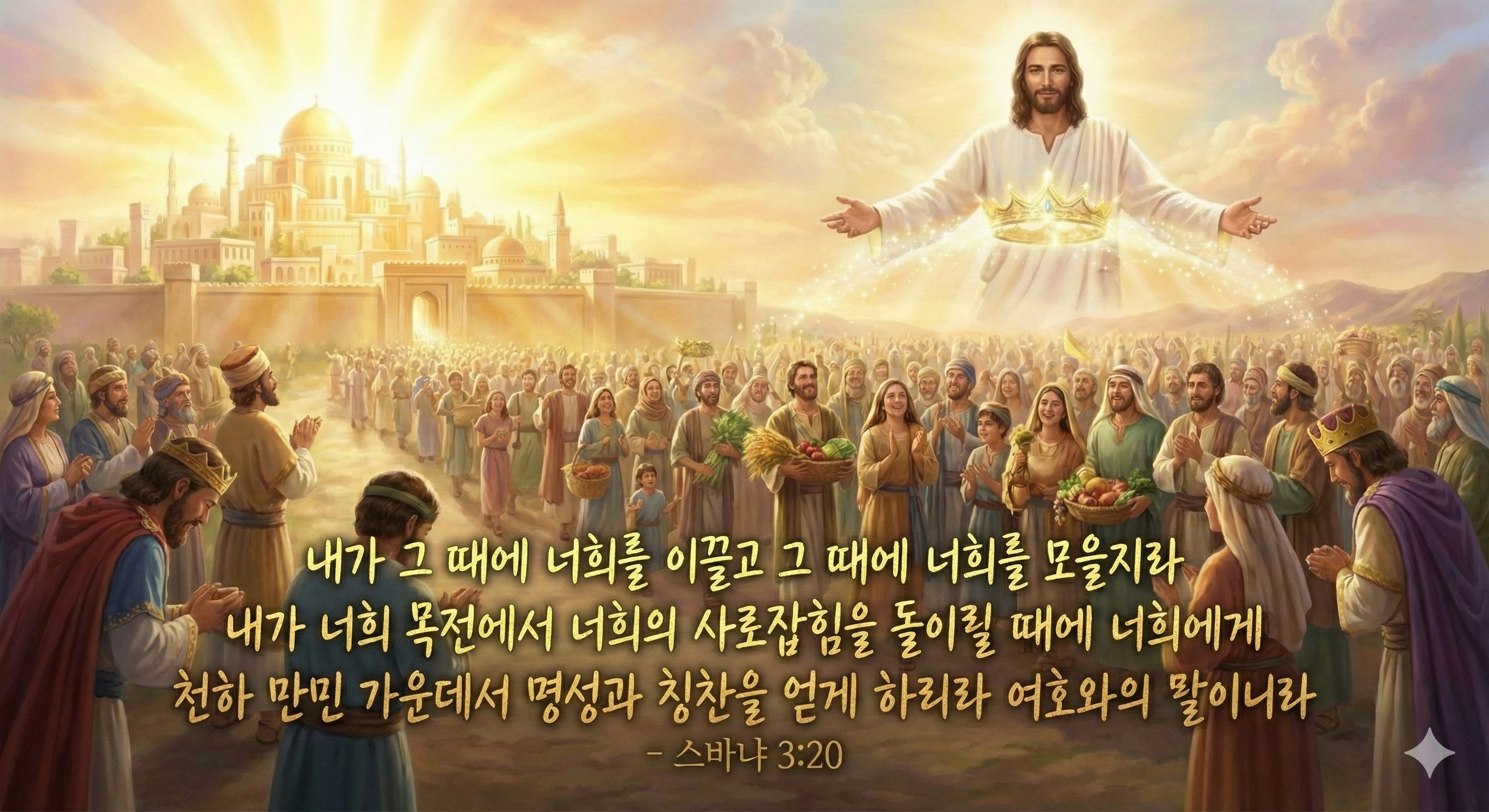 성경 구절: 스바냐 3:20 "그 때에 내가 너희를 이끌어 들일 것이요 곧 그 때에 너희를 모을 것이라 내가 너희 목전에서 너희의 사로잡힌 자들을 돌아오게 할 때에 너희에게 명성과 칭찬을 세계 만민 가운데에 있게 하리라 여호와의 말이니라"